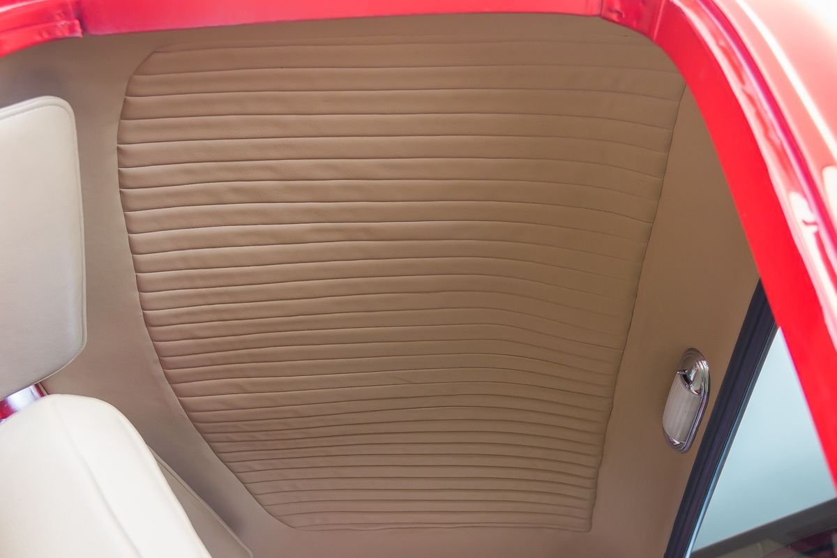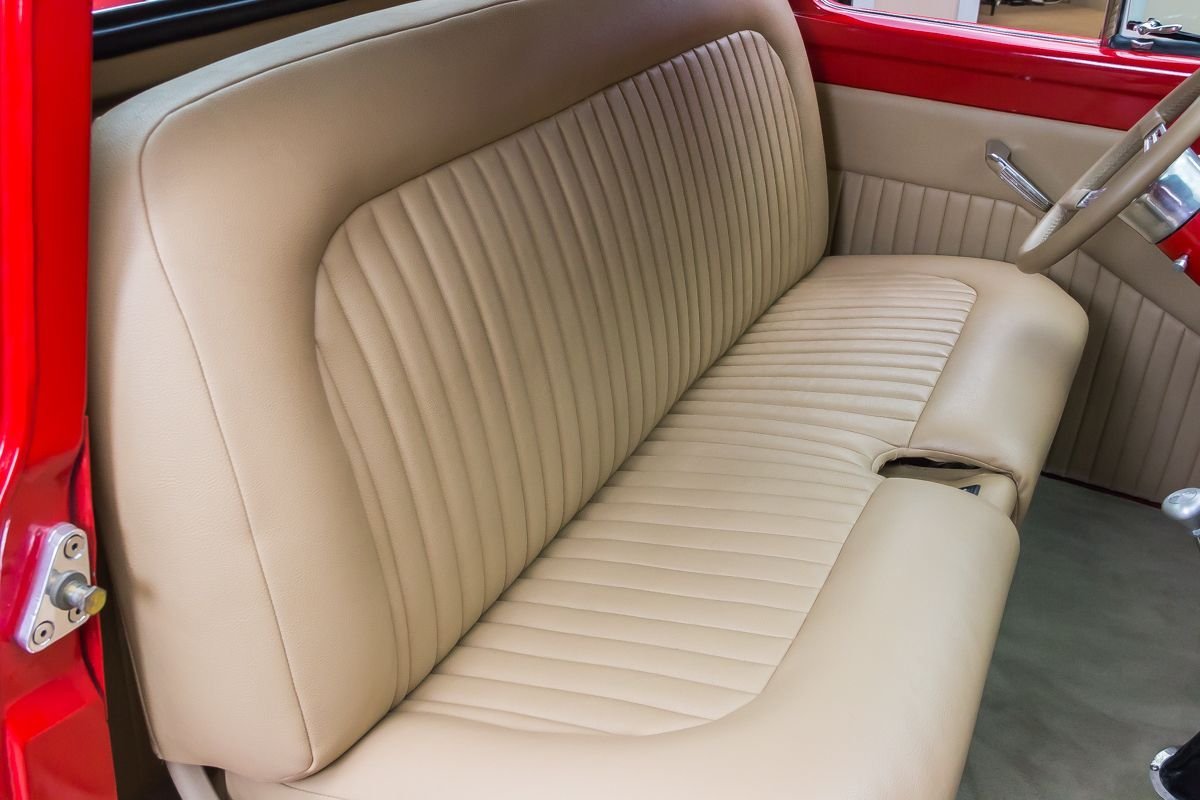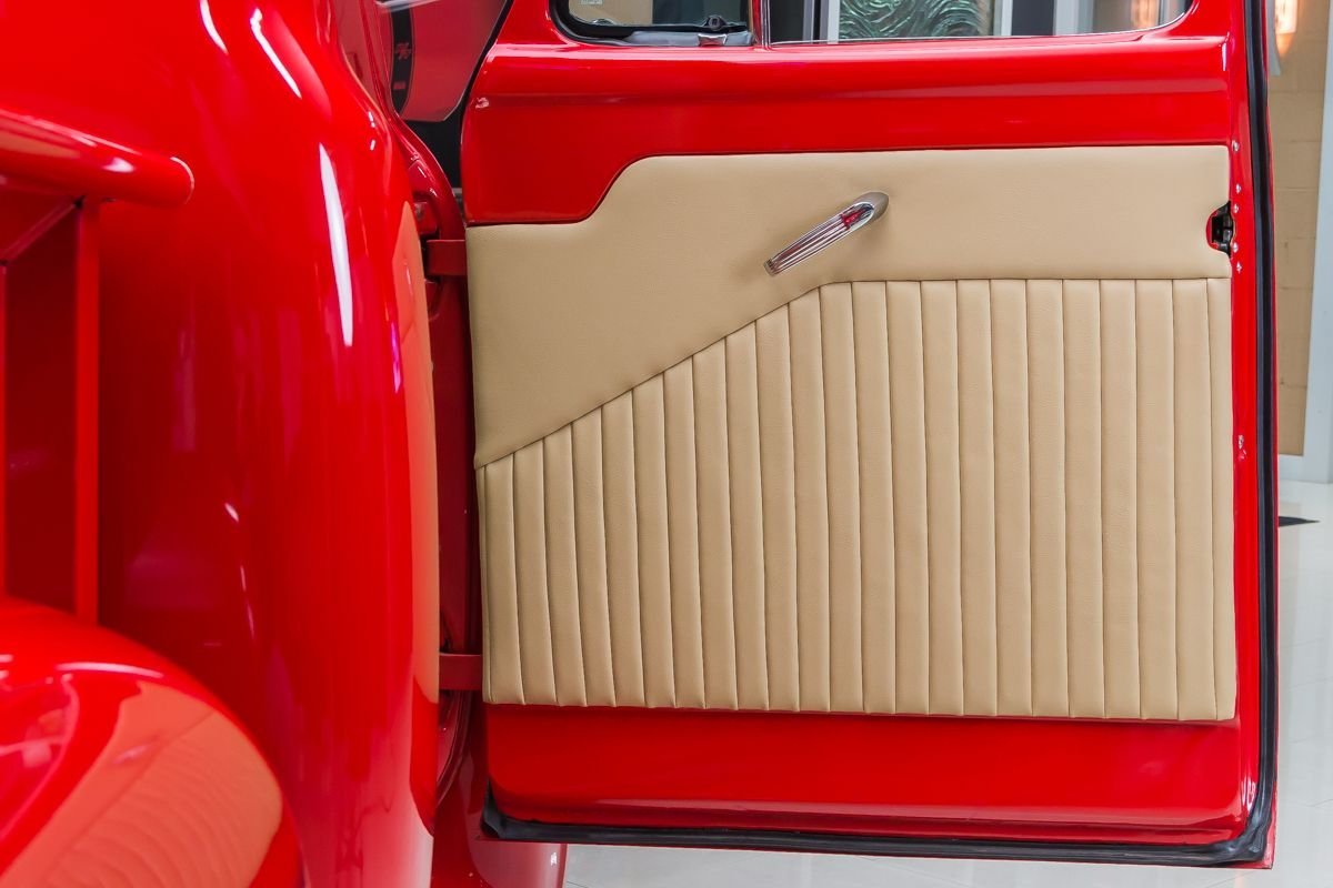 This example has undergone a meticulous frame-off restoration and remains an all-steel truck, a major highlight for collectors and enthusiasts. Finished in red, the body presents exceptionally well with straight panels, excellent gaps, and bright chrome and stainless accents that enhance the truck’s classic appeal. The oak wood bed adds a traditional touch that complements the overall presentation.