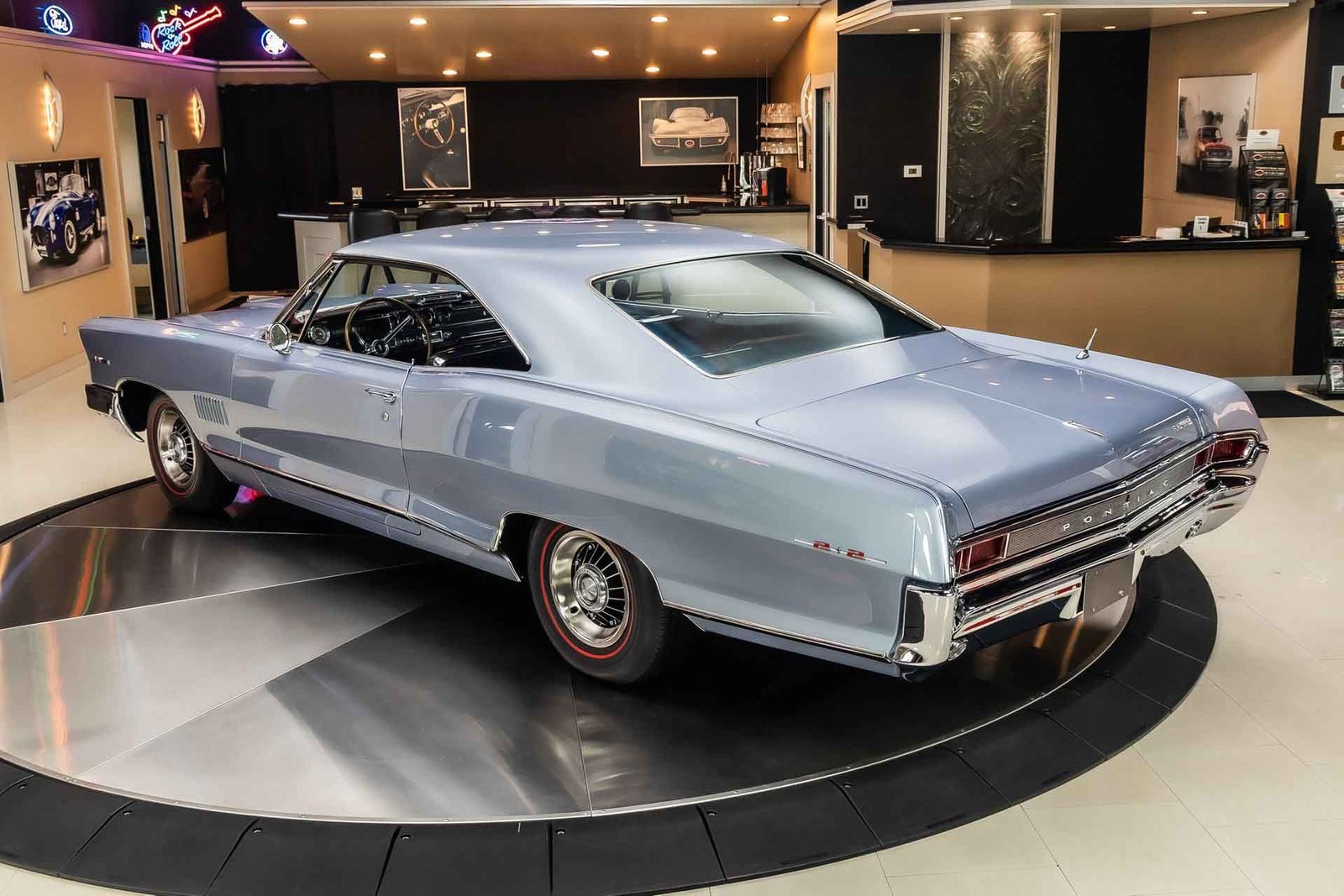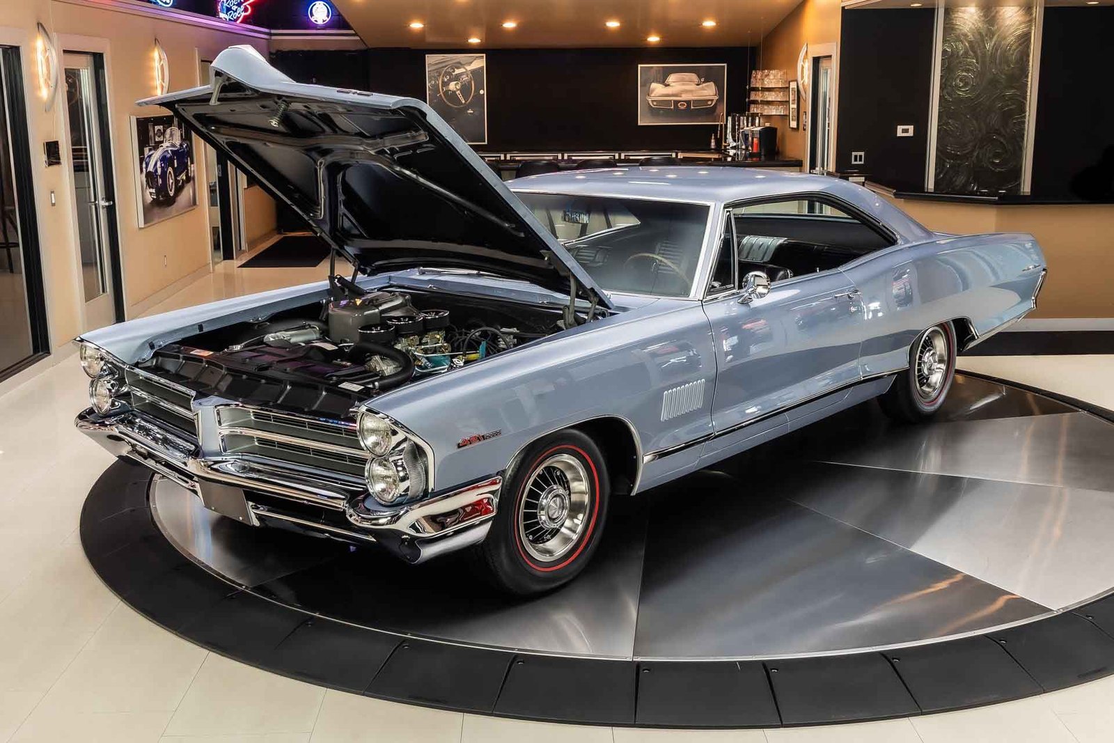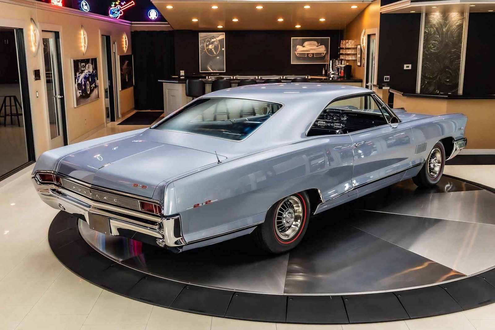 Finished in light blue, this Catalina presents with a clean, classic look that highlights its expansive body lines and unmistakable Pontiac design cues. The iconic 8-lug wheels give the car an immediate performance identity, while the overall fit and finish reflect the quality of a frame-off restoration completed with careful attention to detail.