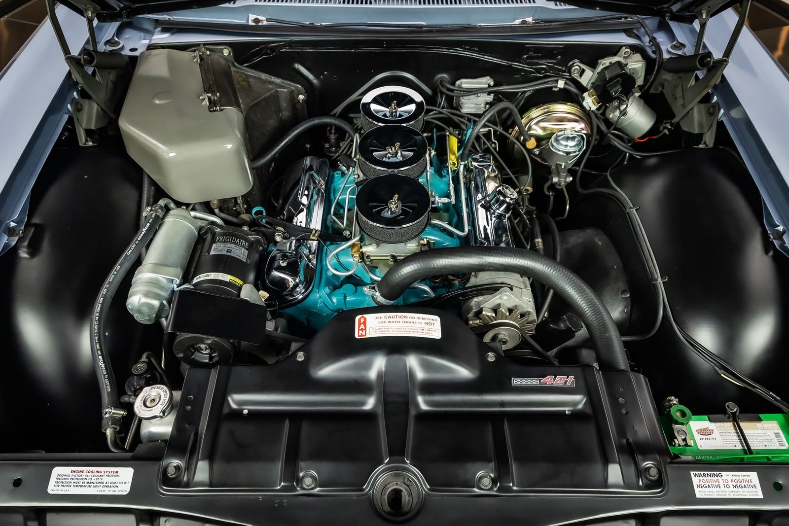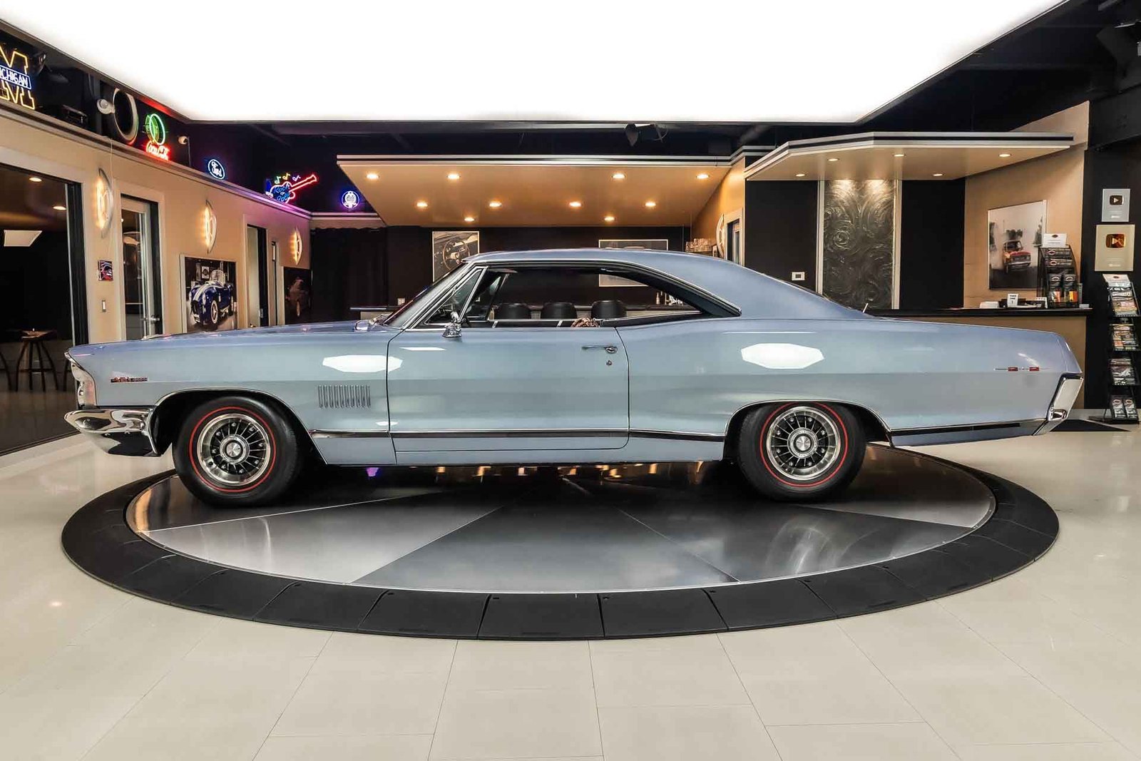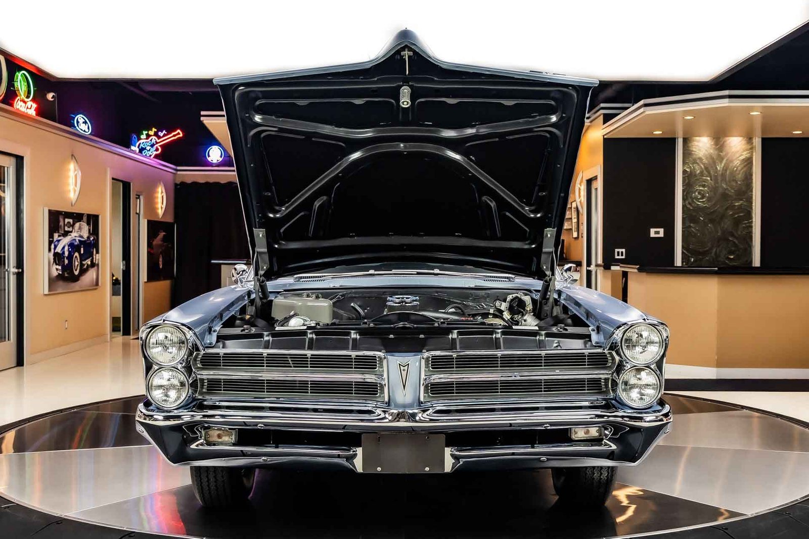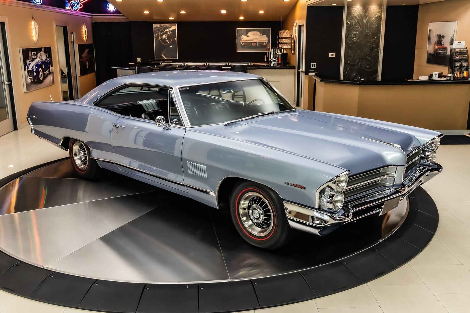 Finished in light blue, this Catalina presents with a clean, classic look that highlights its expansive body lines and unmistakable Pontiac design cues. The iconic 8-lug wheels give the car an immediate performance identity, while the overall fit and finish reflect the quality of a frame-off restoration completed with careful attention to detail.