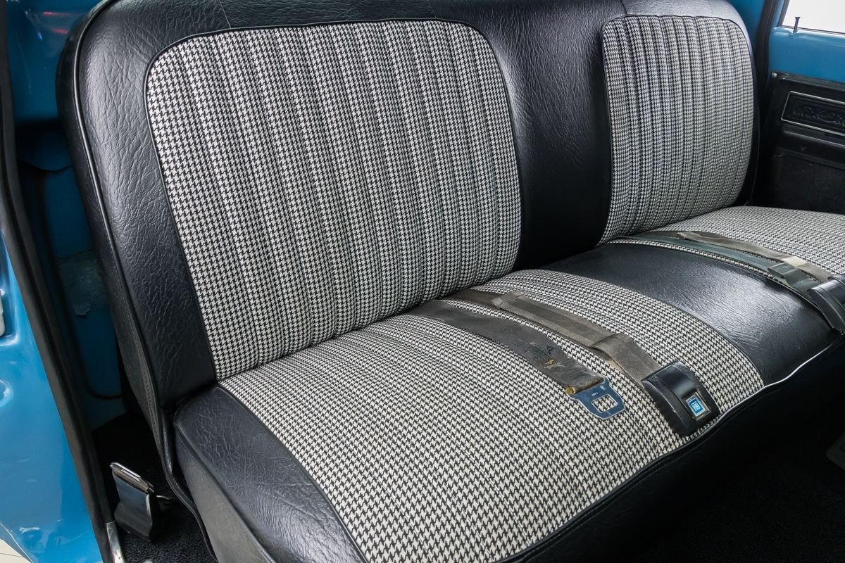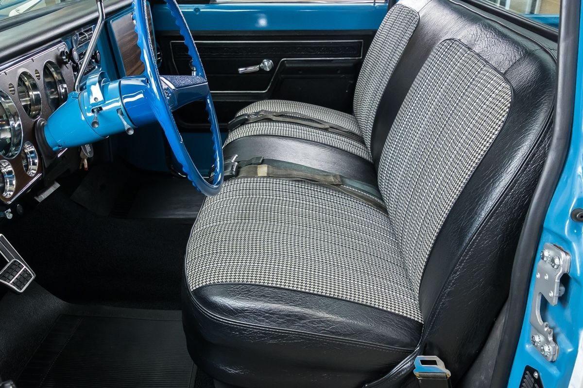 Inside, the cabin maintains a period-correct feel with a houndstooth bench seat, column shifter, and a neatly painted dash. The result is a pickup that captures the look and feel of a factory-fresh 1972 C10 while benefiting from a thorough, high-quality restoration that’s ready to be driven and enjoyed.