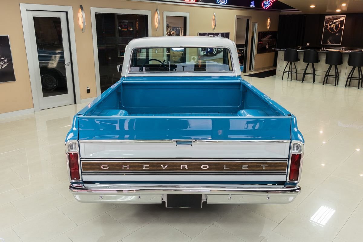 This example has undergone a complete frame-off, rotisserie restoration, executed with a strong focus on quality and factory-correct presentation. Finished in its original-style blue and white two-tone paint scheme, the exterior reflects the timeless appeal of an early-1970s Chevrolet pickup. The body presents cleanly, with straight lines and crisp trim that highlight the truck’s classic proportions.